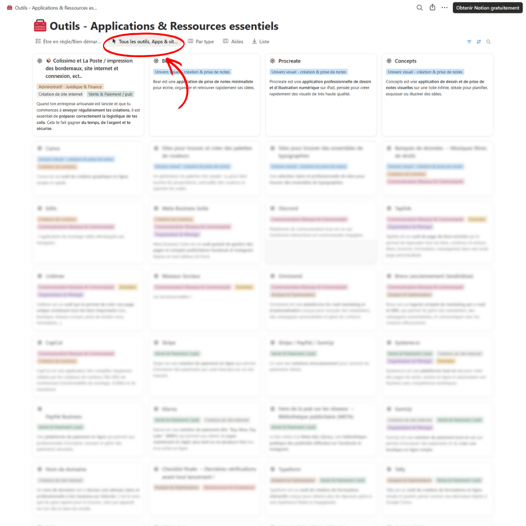 👉 Alors j’ai créé ce que j’aurais aimé avoir au départ : LE TEMPLATE NOTION clair, pensé pour les artisan·es.